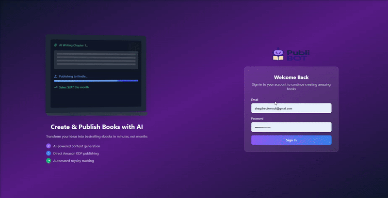 But here’s the catch—most people don’t know how to take advantage of this opportunity. They think it requires endless hours of writing, editing, formatting, and marketing. With PubliBOT, however, the game has changed. Now, AI can do all the hard work for you!