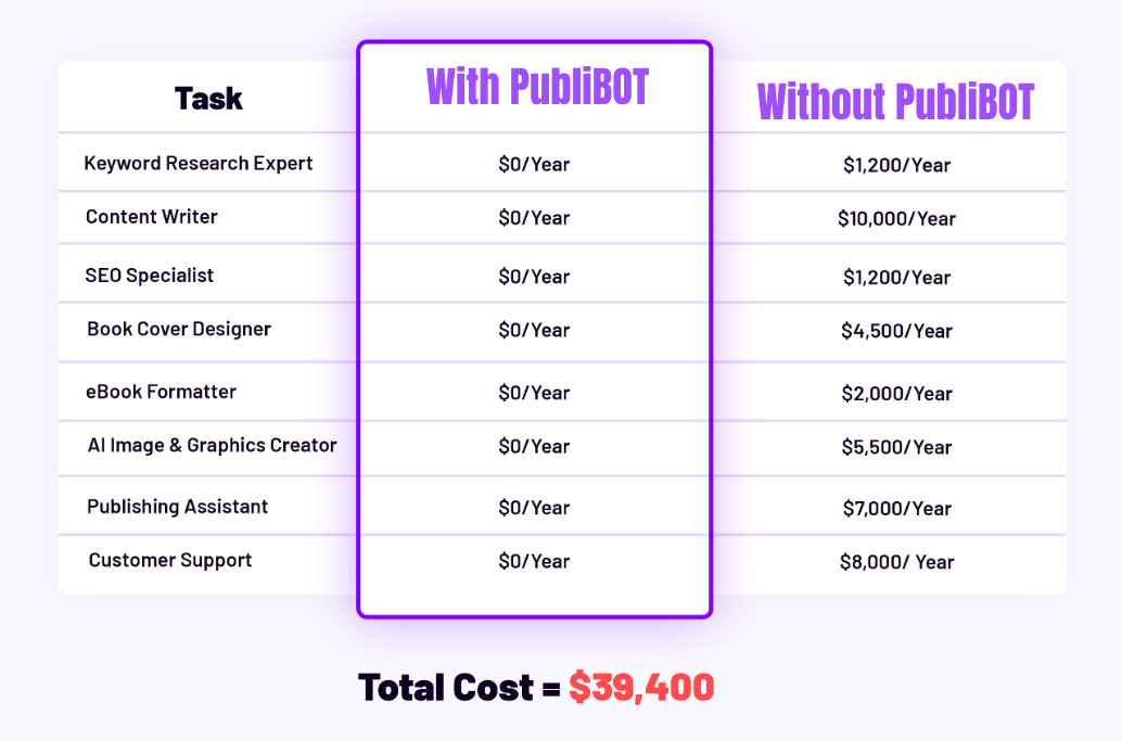 - Say goodbye to the complexities of self-publishing—PubliBOT’s AI-driven system handles everything from research to ranking.